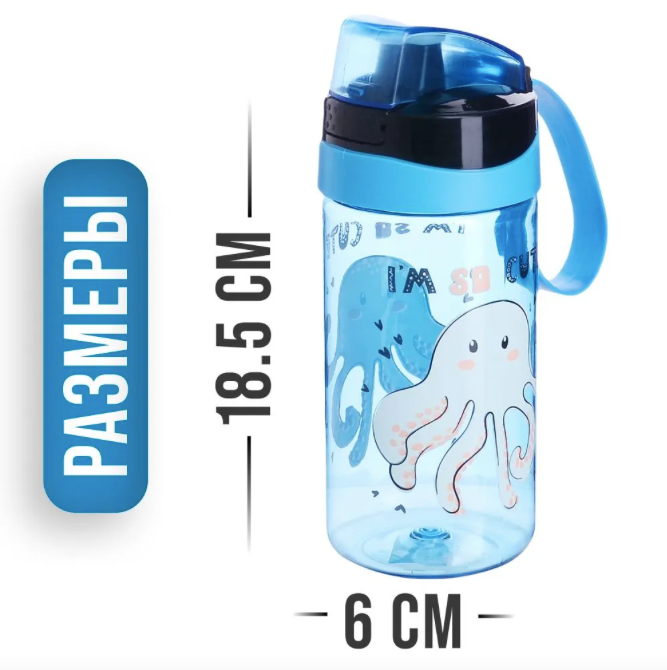 Бутылка для воды 520 мл. детская пластик голубая информация: