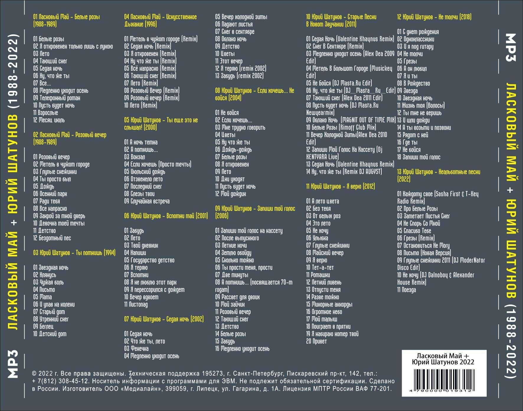 Ласковый Май + Юрий Шатунов - Полная дискография (1988-2022) (Запись на CDR) (MP3) информация:
