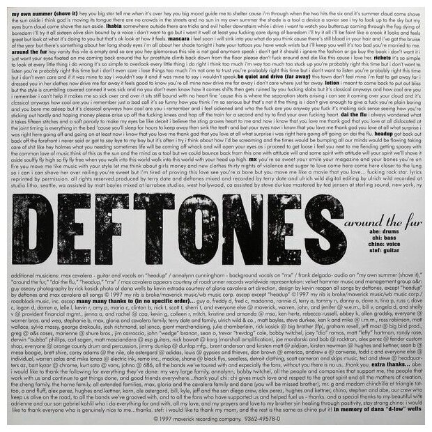 | Треклист | A1 My Own Summer (Shove It) A2 Lhabia A3 Mascara A4 Around The Fur A5 Rickets B1 Be Quiet And Drive (Far Away) B2 Lotion B3 Dai The Flu B4 Headup B5 MX |