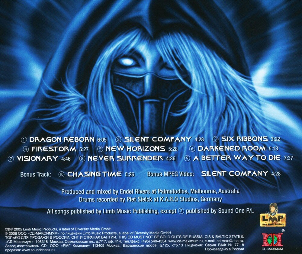 | Треклист | 1. Dragon Reborn; 2. Silent Company; 3. Six Ribbons; 4. Firestorm; 5. New Horizons; 6. Darkened Room; 7. Visionary; 8. Never Surrender; 9. A Better Way To Die; 10. Bonus Track: Chasing Time; 11. Bonus MPEG Video: Silent Company; |