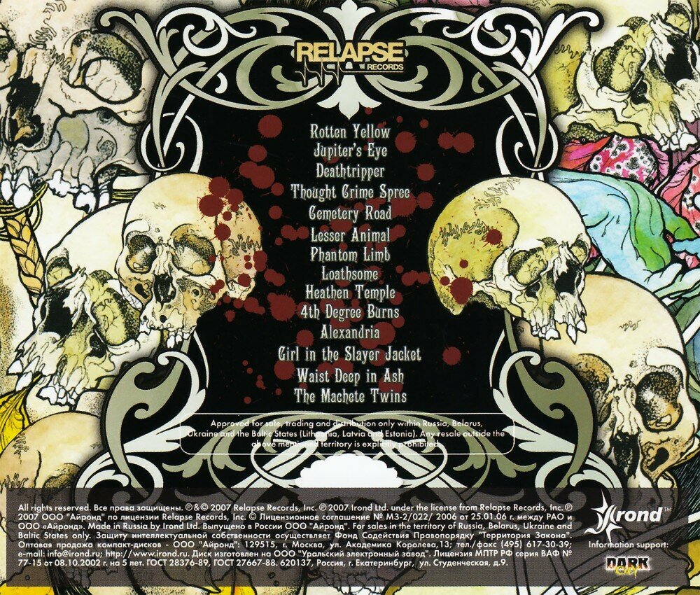 | Треклист | 1. Rotten Yellow; 2. Jupiter's Eye; 3. Deathtripper; 4. Thought Crime Spree; 5. Cemetery Road; 6. Lesser Animal; 7. Phantom Limb; 8. Loathsome; 9. Heathen Temple; 10. Fourth Degree Burns; 11. Alexandria; 12. Girl In The Slayer Jacket; 13. Waist Deep In Ash; 14. The Machete Twins; |