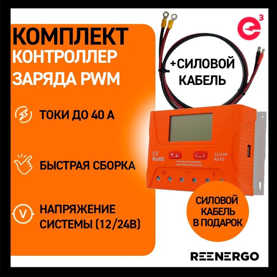 Отзывы на Контроллер заряда DELTA(SmartWatt) PWM 2440 + Готовый Силовой кабель 6 мм²