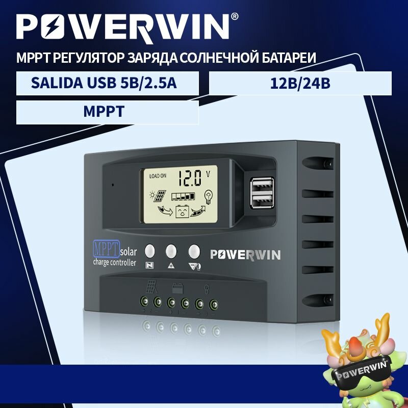 Отзывы на POWERWIN MPPT 12 В 24 В USB ЖК-дисплей солнечный контроллер авто панель солнечных батарей регулятор зарядного устройства двойной