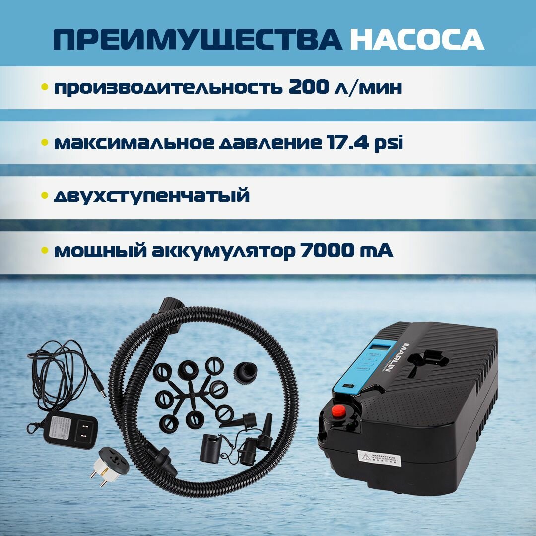 Электрический насос Marlin SE-120 встроенная аккумуляторная батарея, насос для сапборда, лодки пвх, матраса, бассейна информация: