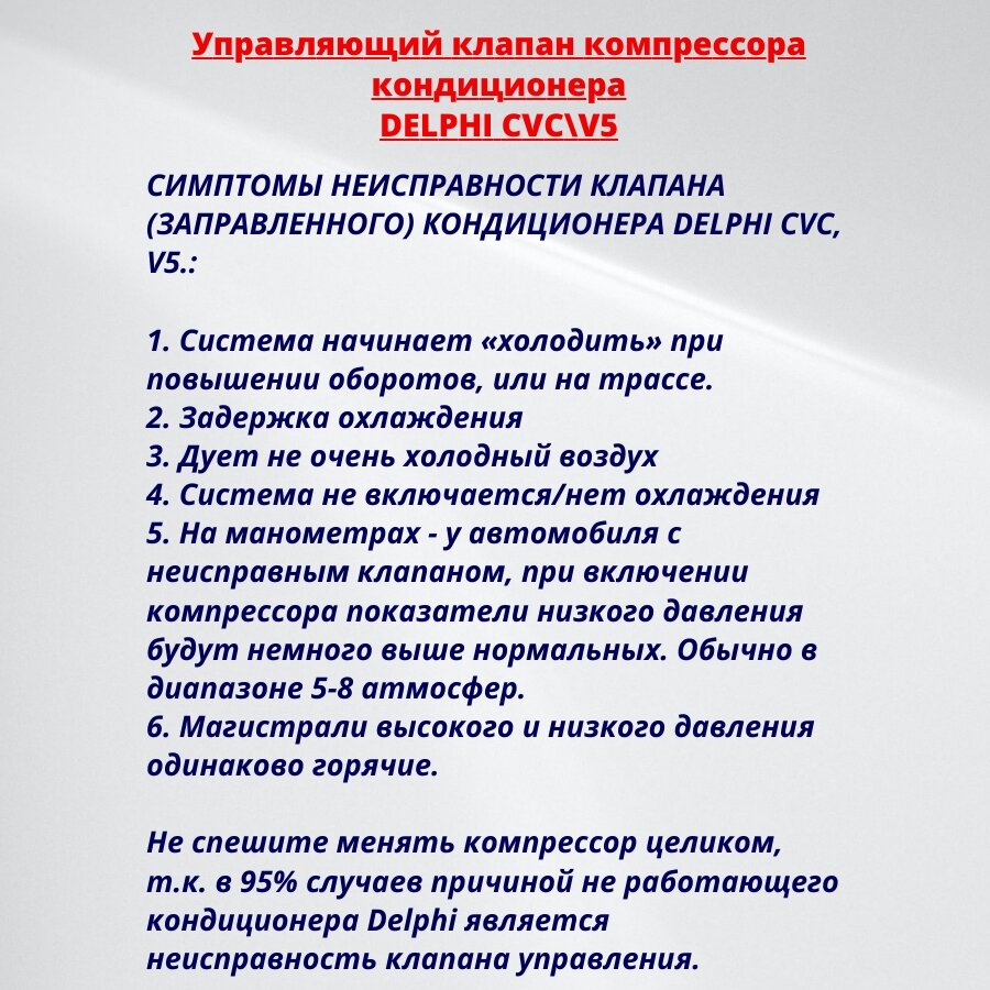 Отзывы на Клапан компрессора кондиционера (синий) DELPHI 96813684 Chevrolet Daewoo
