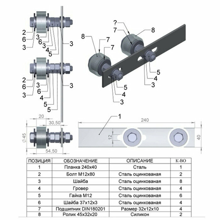 Комплект верхних поддерживающих роликов для откатных ворот на пластине, d. 45 мм, материал силикон, 2 шт информация: