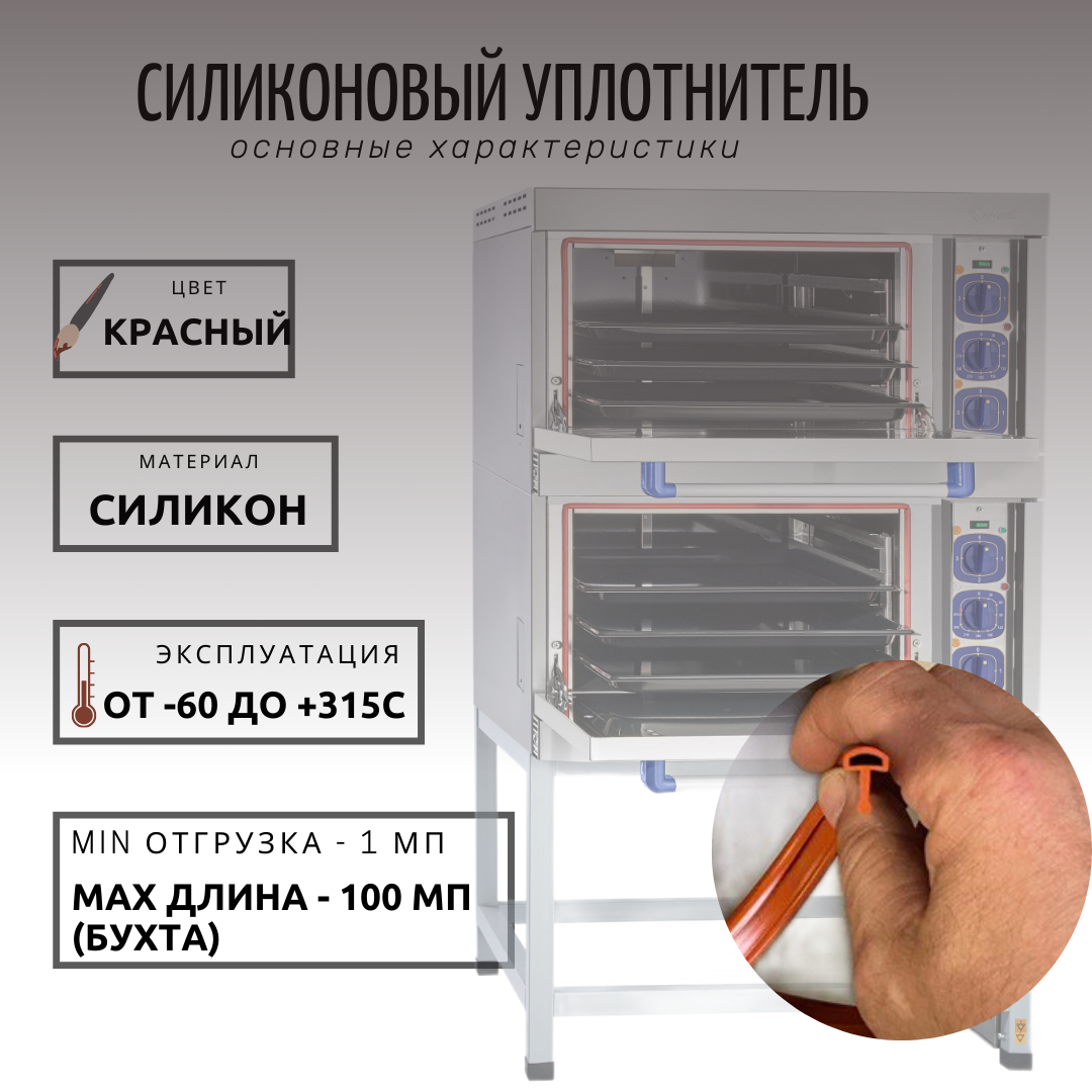 Уплотнитель силиконовый двери теплового оборудования Abat ЭП, ЭШ, ШЖЭ, ШРТ 1 мп (отрезной) информация: