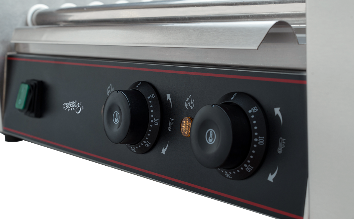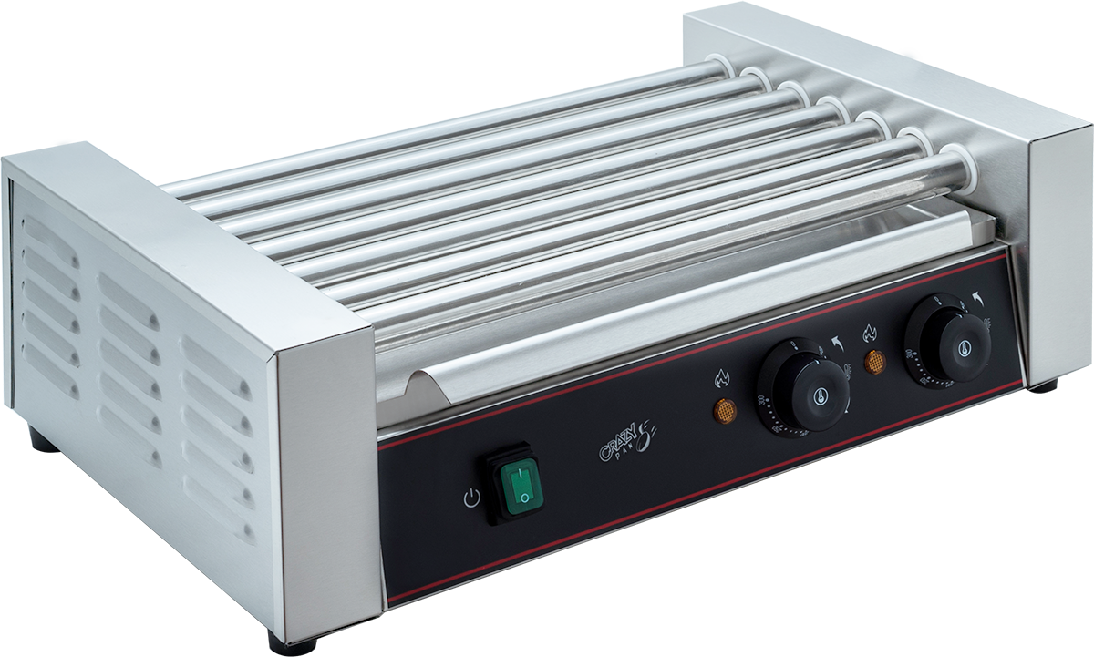10 цен на Гриль роликовый Crazy Pan CP-HDG07, 1.4 кВт, 220В, 7 роликов, нержавеющая сталь, поддон для сбора жира, размеры 560x360x185мм