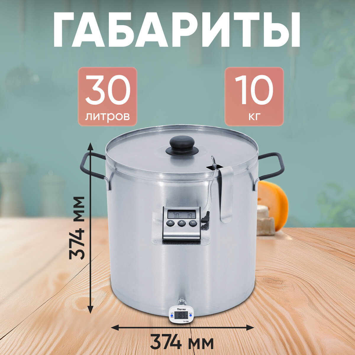 | Подробная комплектация | сыроварня на 30 л - 1 шт, хомут 8-12мм - 2 шт, трубка ПВХ d=7 мм - 4 метра, термометр "Фантаст" - 1 шт, гарантийный талон - 1 шт, набор для приготовления сыра -1 шт, термометр "Termo" 140 мм - 1 шт, хомут червячный 16х27 - 1 шт, мешалка для сыроварни - 1 шт, нож Лира - 1 шт |
