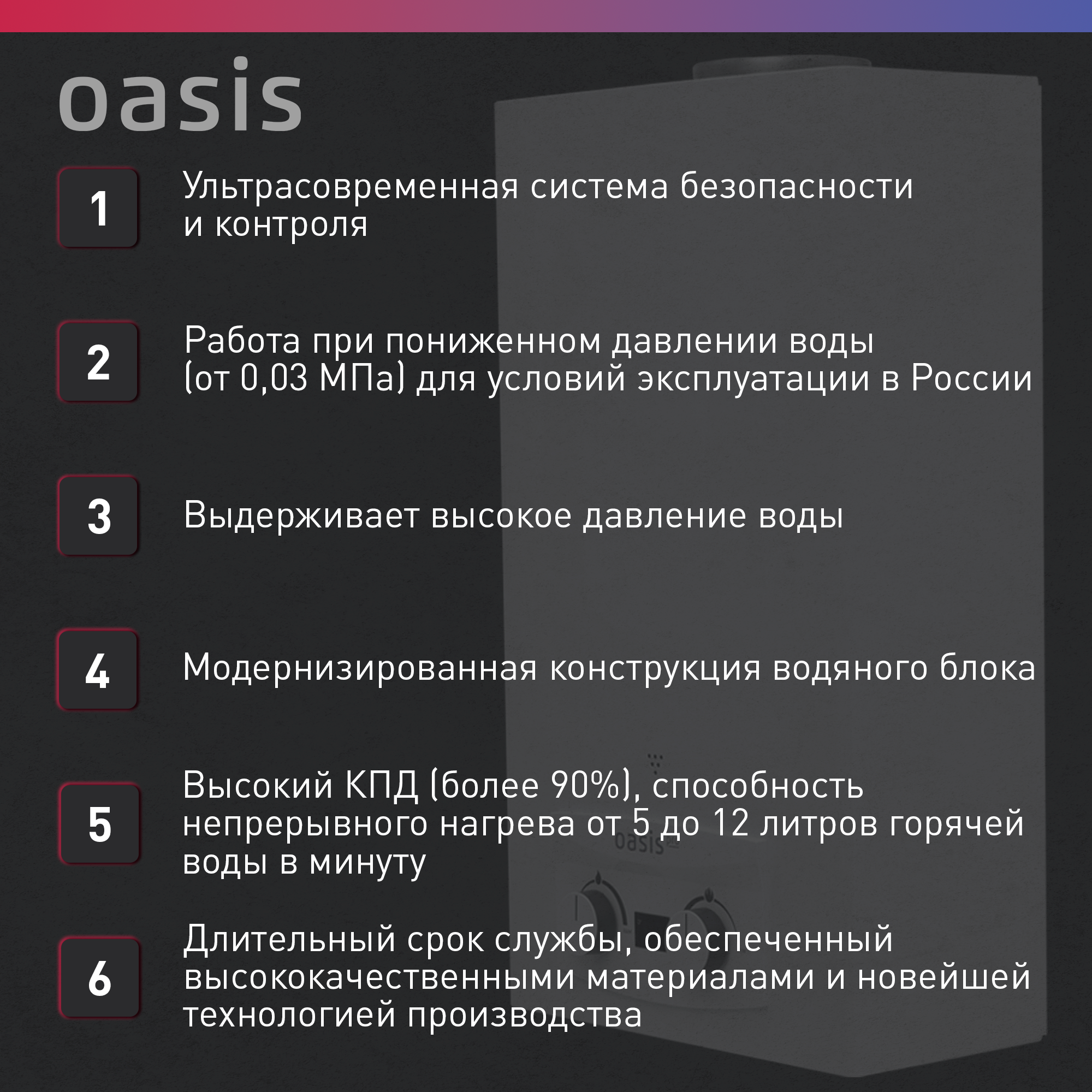 Газовая колонка / водонагреватель газовый проточный для воды Oasis Pro WM 10 информация: