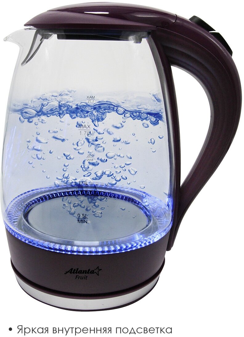 Электрический чайник Atlanta - 1,7л стекло, цвет фиолетовый информация: