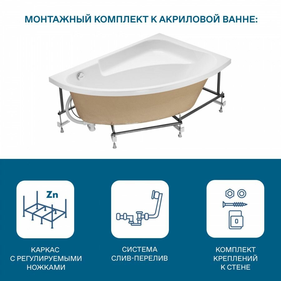 Ванна Gamma 140х70 см, акриловая, на каркасе, экран к ванне Gamma 140