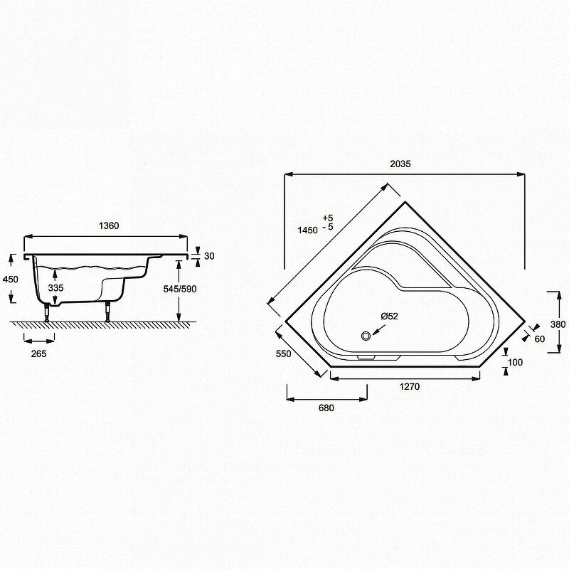 | Дополнительная информация | правосторонняя и левосторонняя, душевая зона, встроенное сидение; опции: душевая перегородка |