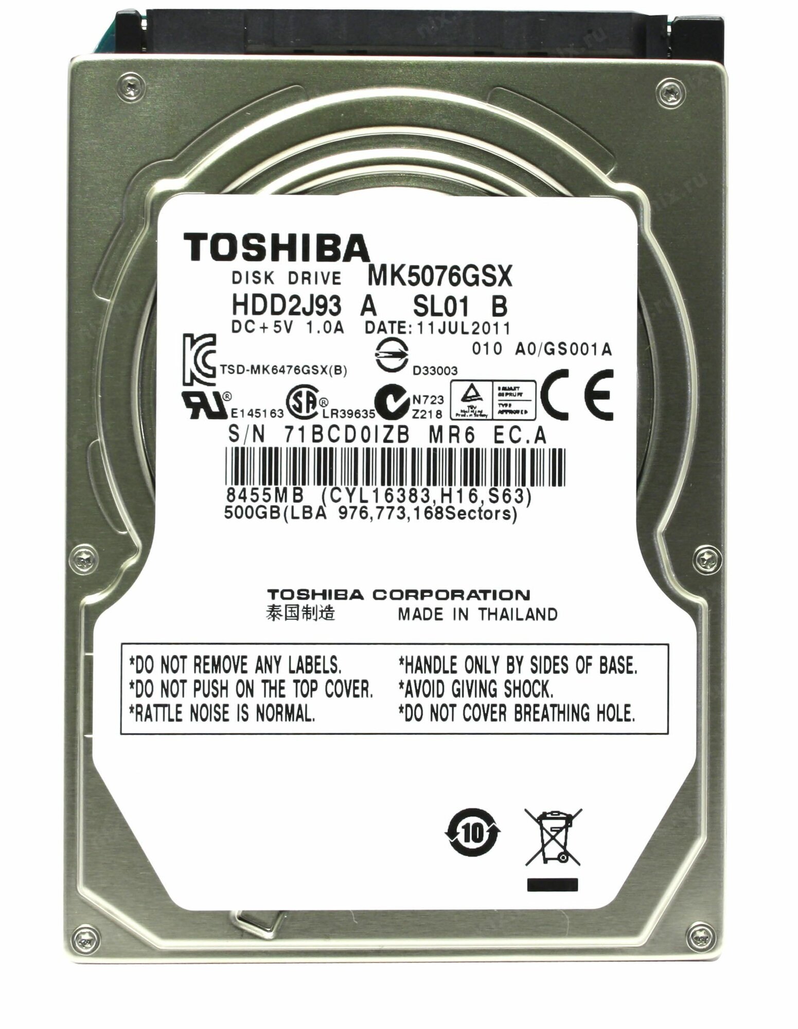 Жесткий диск Toshiba MK5076GSX 500 Гб информация: