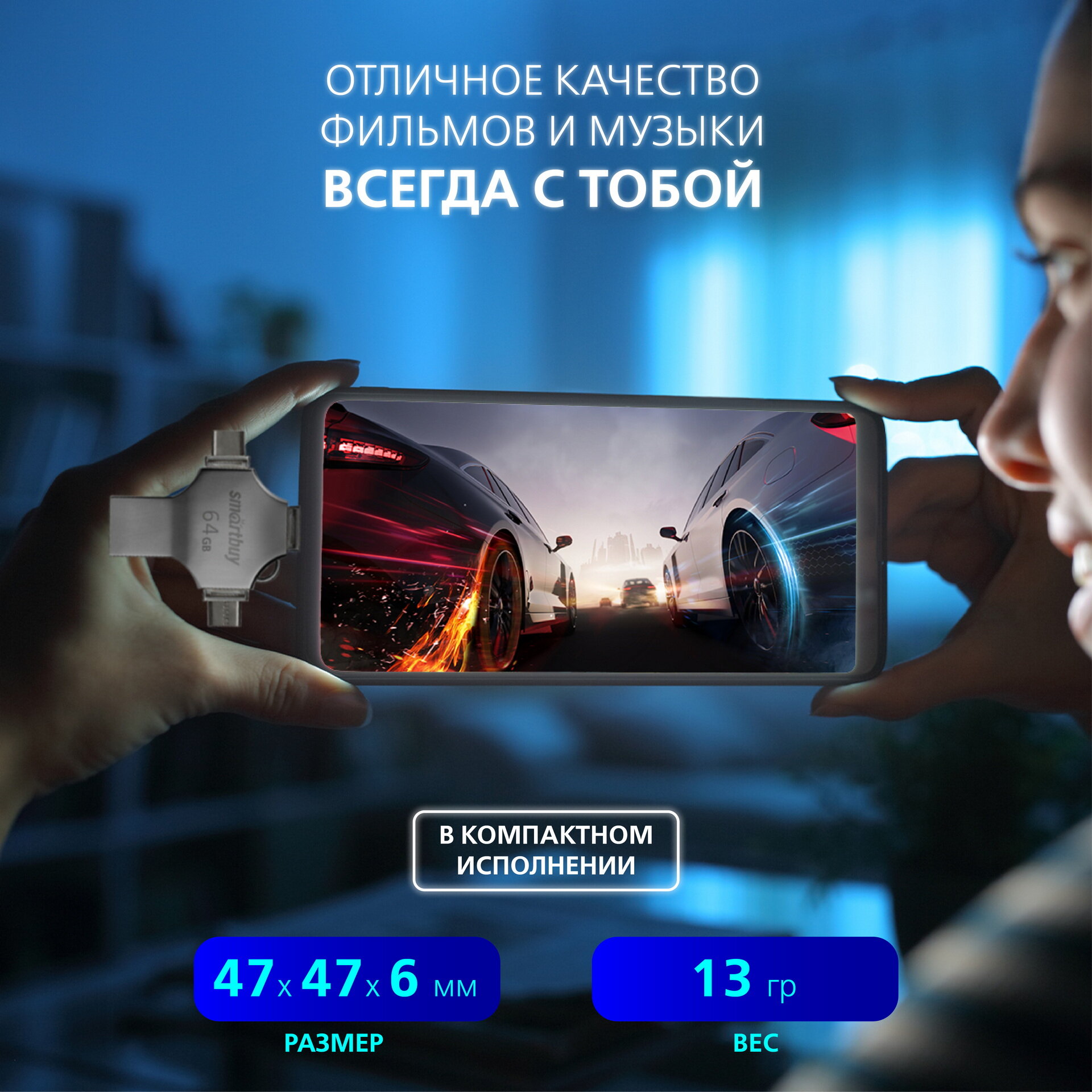 Флешка MC15 Metal Quad, 4-in-1 OTG, 128 Гб, USB3.0, Type-C, microUSB, lightning 2 662 ₽