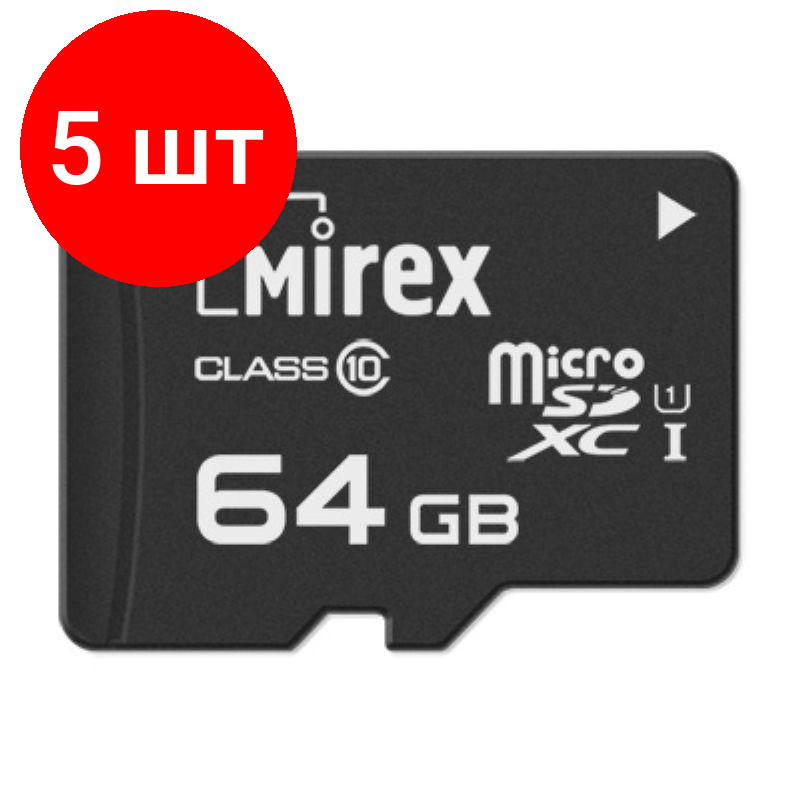 10 цен на Комплект 5 штук, Карта памяти Mirex microSDХC 64Gb (UHS-I, U1, class 10) (13612-MC10SD64)