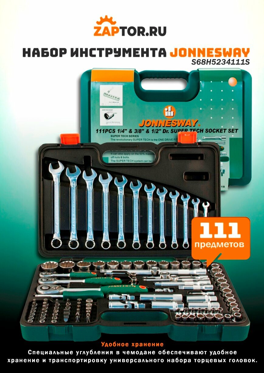 JONNESWAY S68H5234111S Набор инструментов универсальный 1/4 inch , 1/2 inch DR Super Tech, 111 предметов