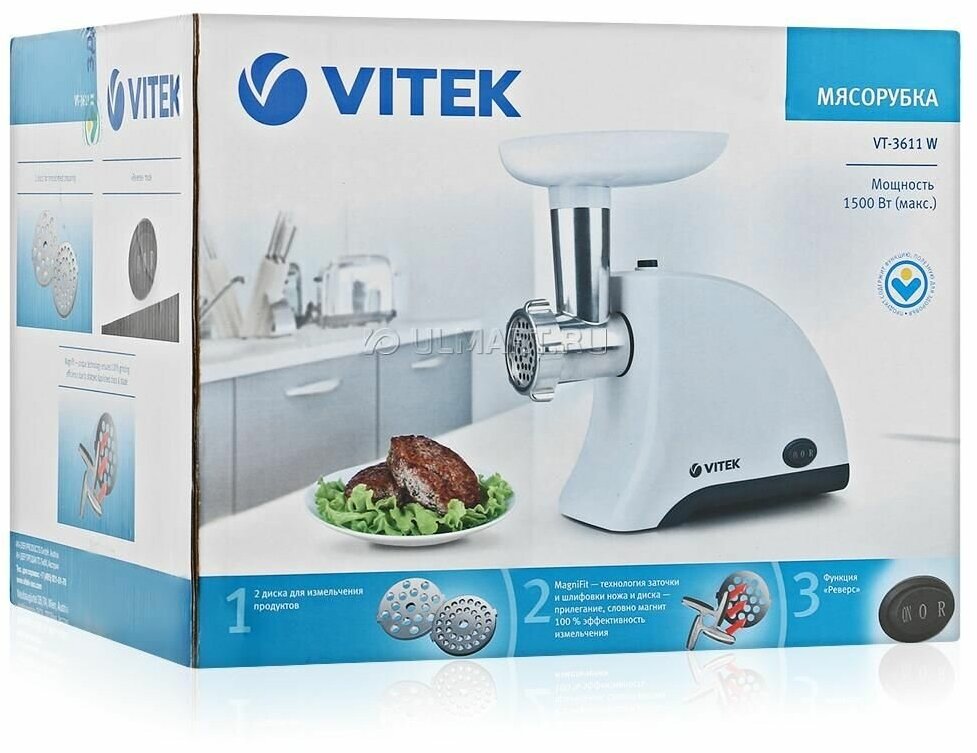 10 цен на vitek vt-3611 (w) белый мясорубка