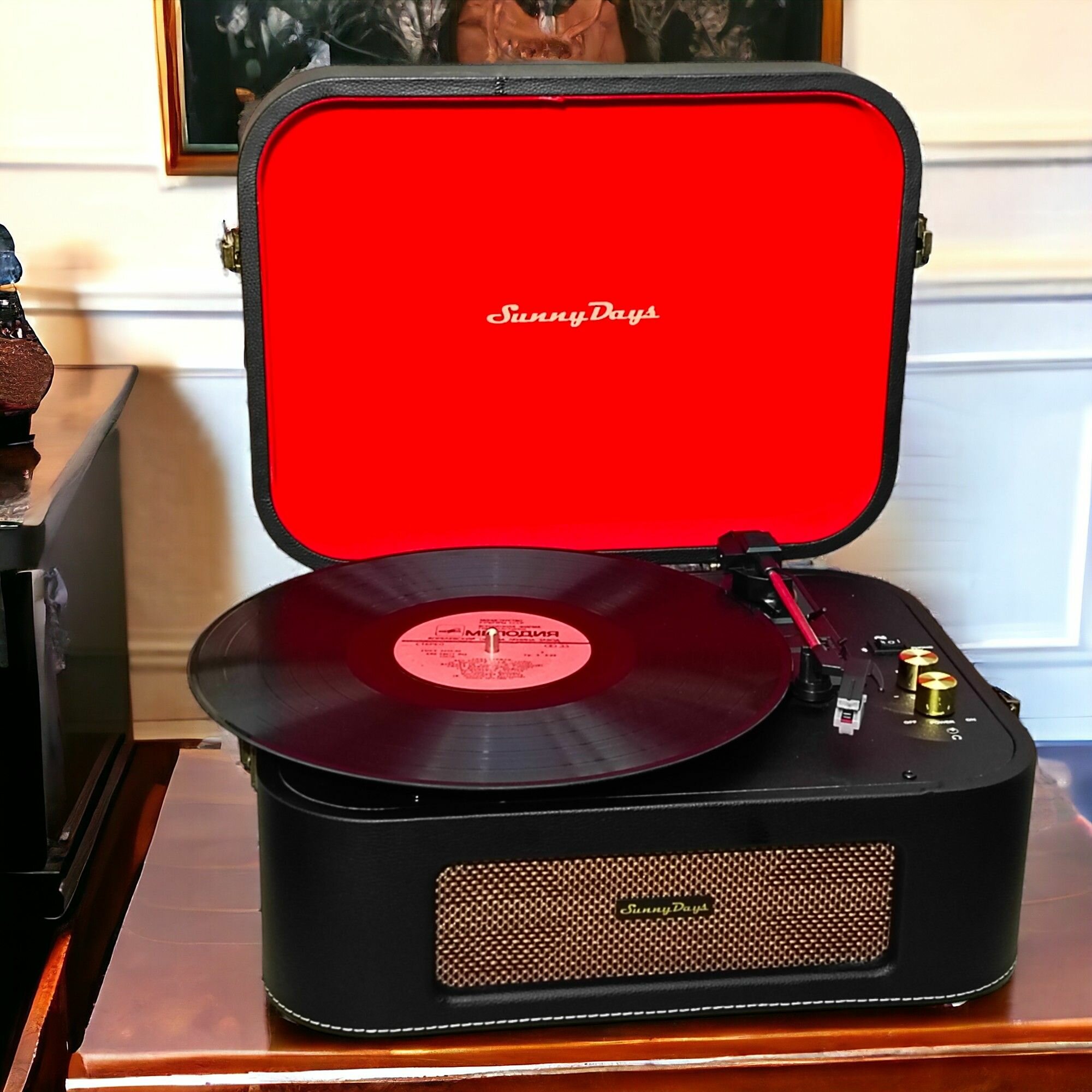 Проигрыватель SunnyDays виниловых дисков, дизайнерский винтаж чемоданчик для пластинок ретро винила информация: