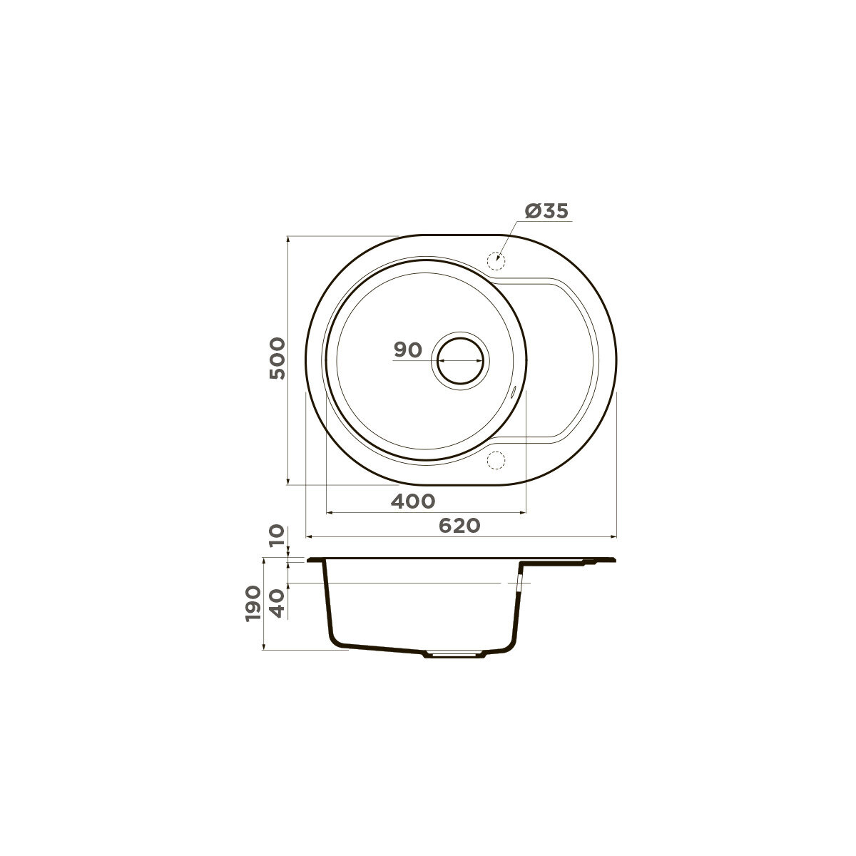 Мойка Melana 5745 U 0,6/160 врезная овальная с сифоном (120 ta *15)