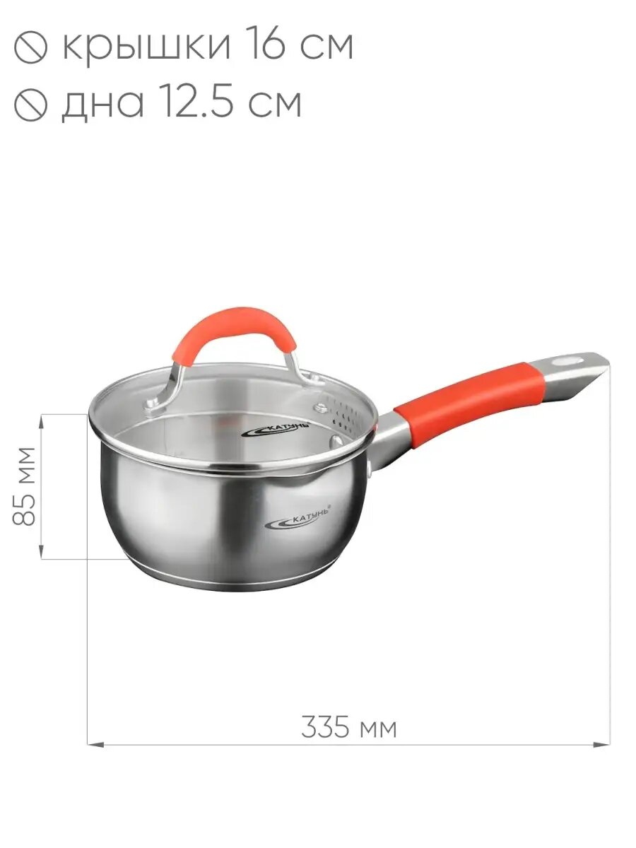 Ковш Катунь KT-07-K Аврора, d=16,1,6л, нерж сталь, со стек. крышкой, с силикон держателем