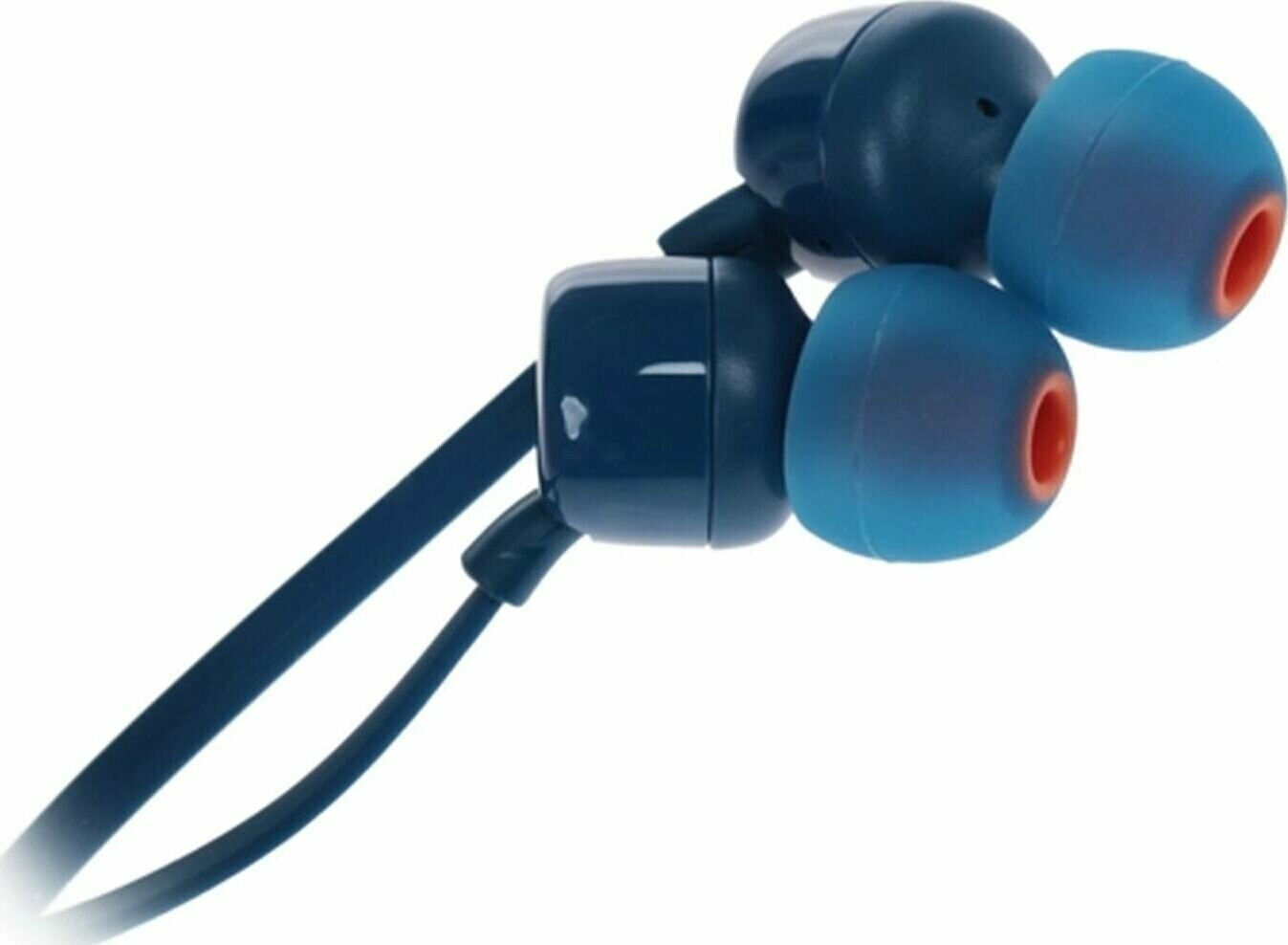 Проводные наушники JBL TUNE 110 blue / 3.5 мм / вкладыши / звук PureBass Sound, Stereo / внутриканальные, микрофон / плоский кабель с защитой от спутывания