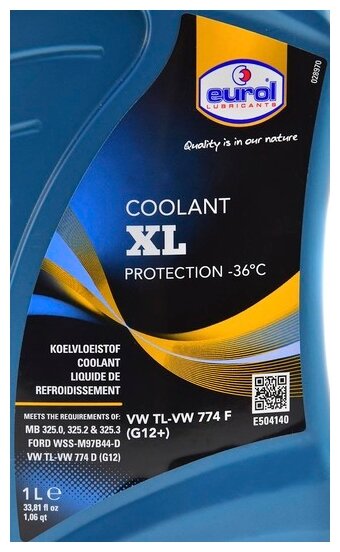 Отзывы на Жидкость охлаждающая (антифриз) Eurol Coolant XL Желтый -36 C, готовый, 1л