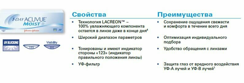 Acuvue контактные линзы 1-Day Acuvue Moist (30 линз) 9.0 -5.5 информация: