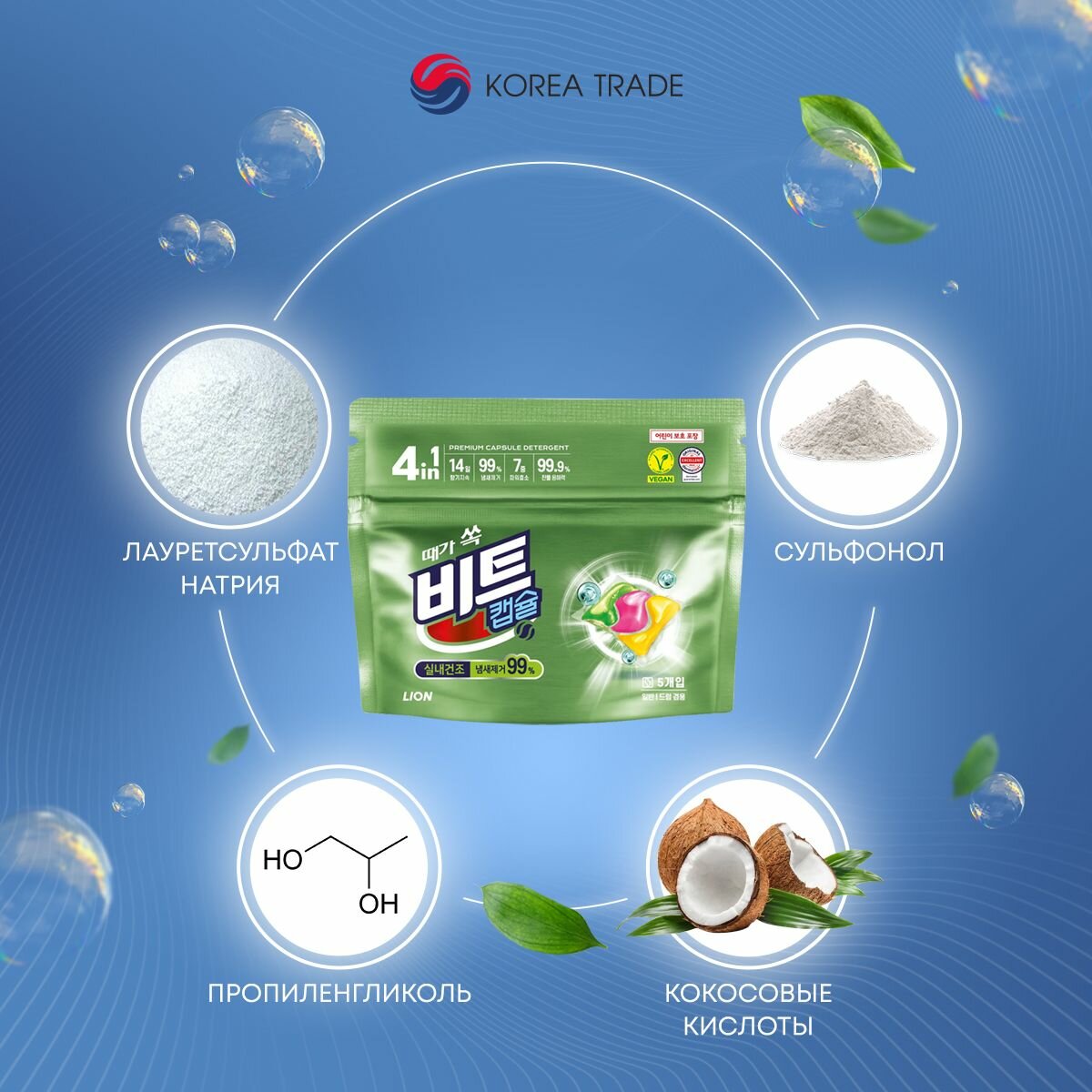 LION Beat Capsule Detergent (indoor) Средство для стирки жидкое в капсулах 5шт информация: