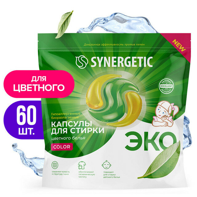 капсулы для стирки SYNERGETIC Color 60x16г информация: