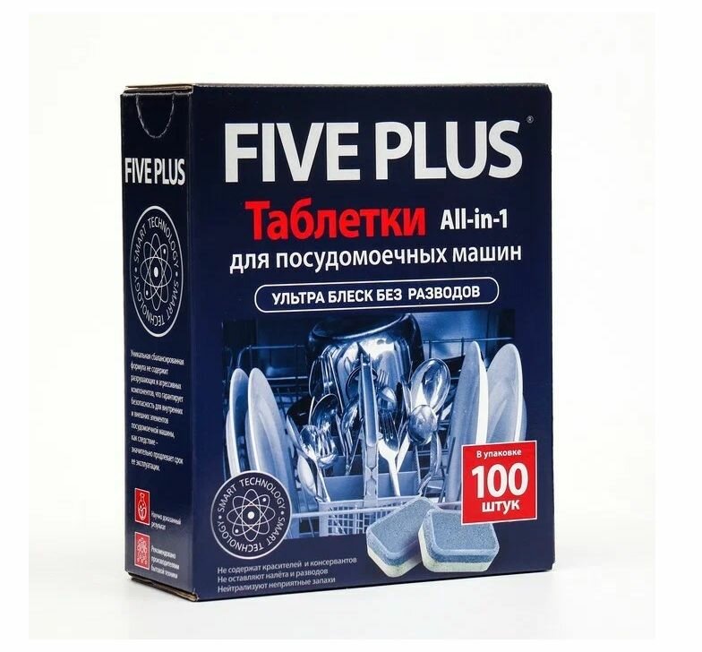 10 цен на Таблетки для посудомоечных машин Five Plus 100 штук, безопасны для здоровья