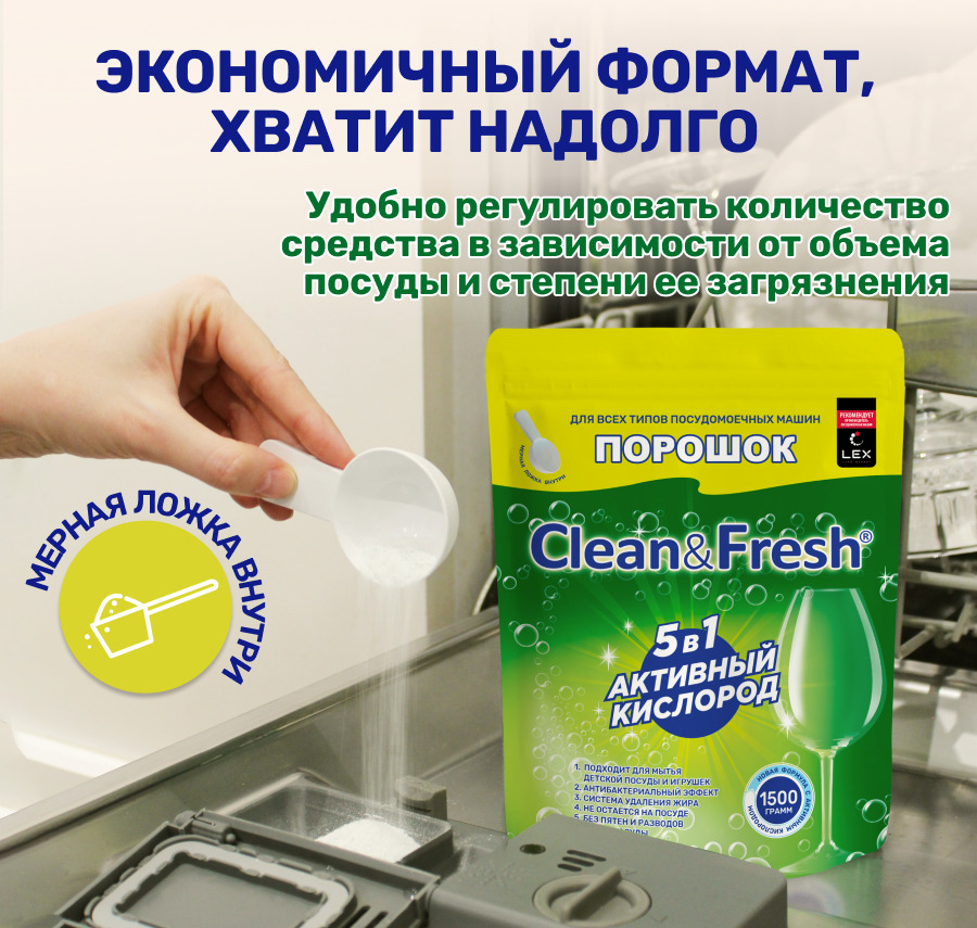 Порошок для посудомоечной машины Clean&Fresh All in 1, 5 в 1, 1500 гр. информация: