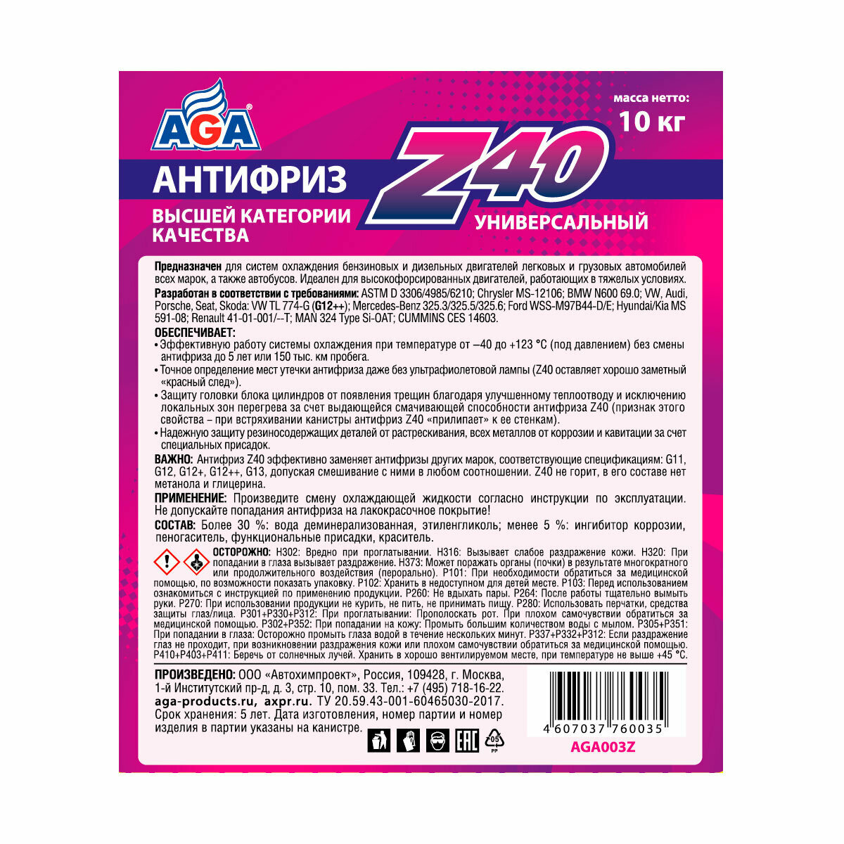 Антифриз AGA Z40 красный G12++ (9.46 л/10 кг) AGA003Z информация:
