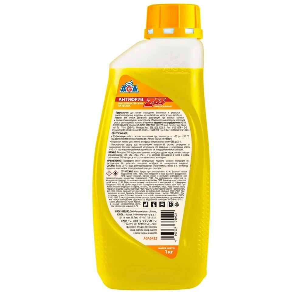 Антифриз-готовый Aga Z65 жёлтый, -65С, 1 кг, 042Z 555 ₽