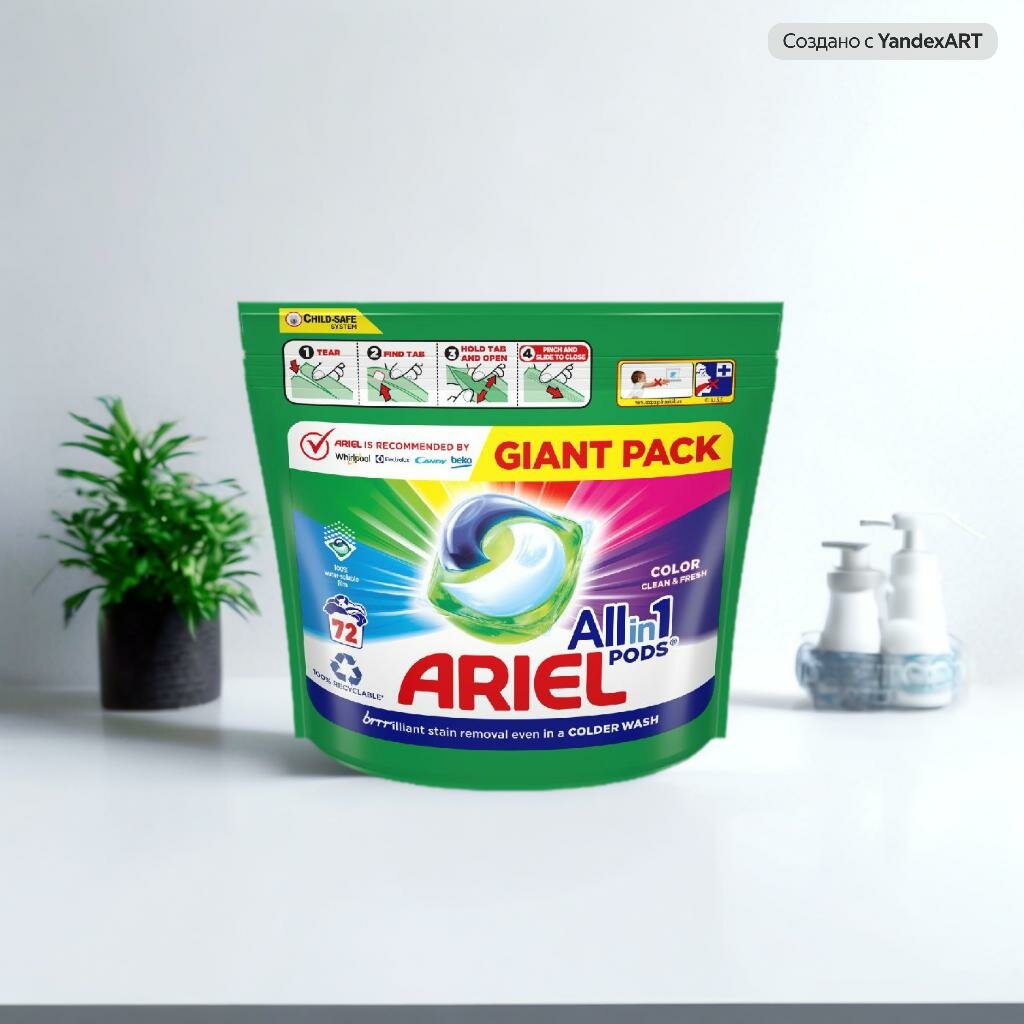Капсулы для стирки цветного белья Ariel Pods All in One Color, 72 шт информация: