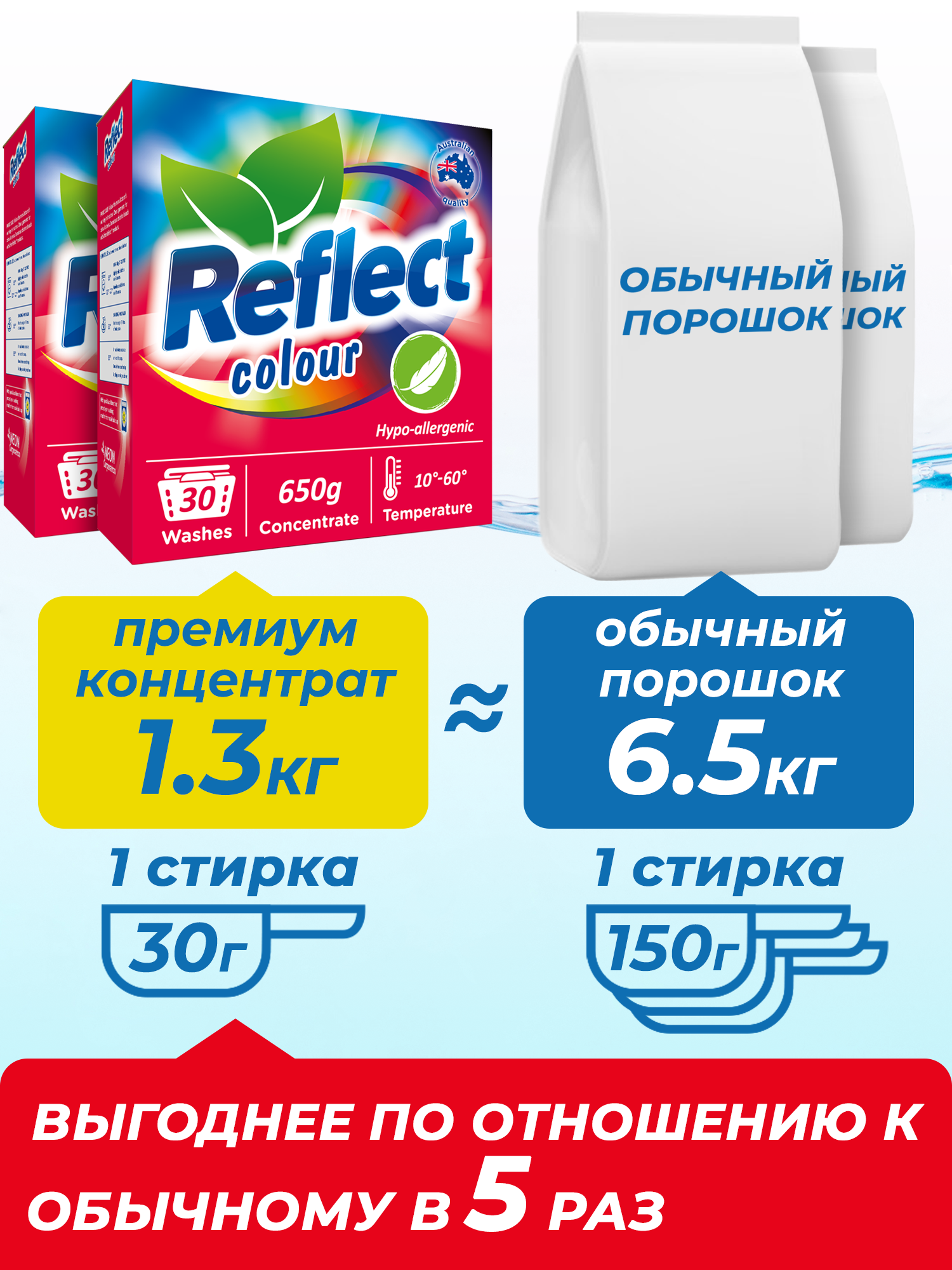 Reflect Стиральный порошок концентрированный для цветных вещей Colour 650г, комплект: 2 упаковки по 650г информация: