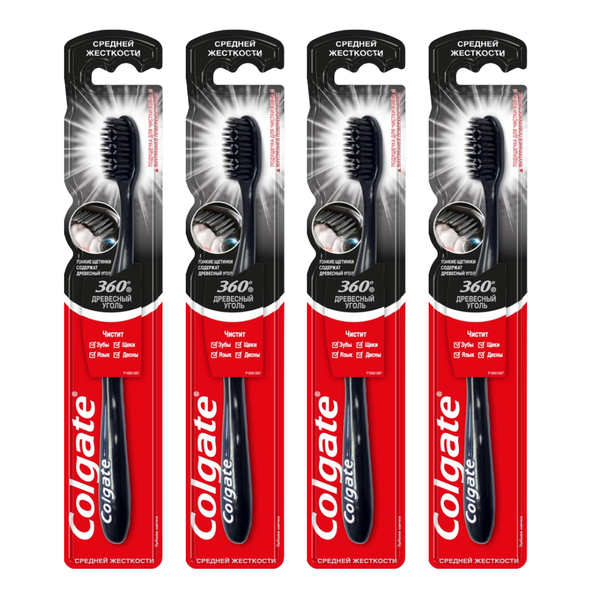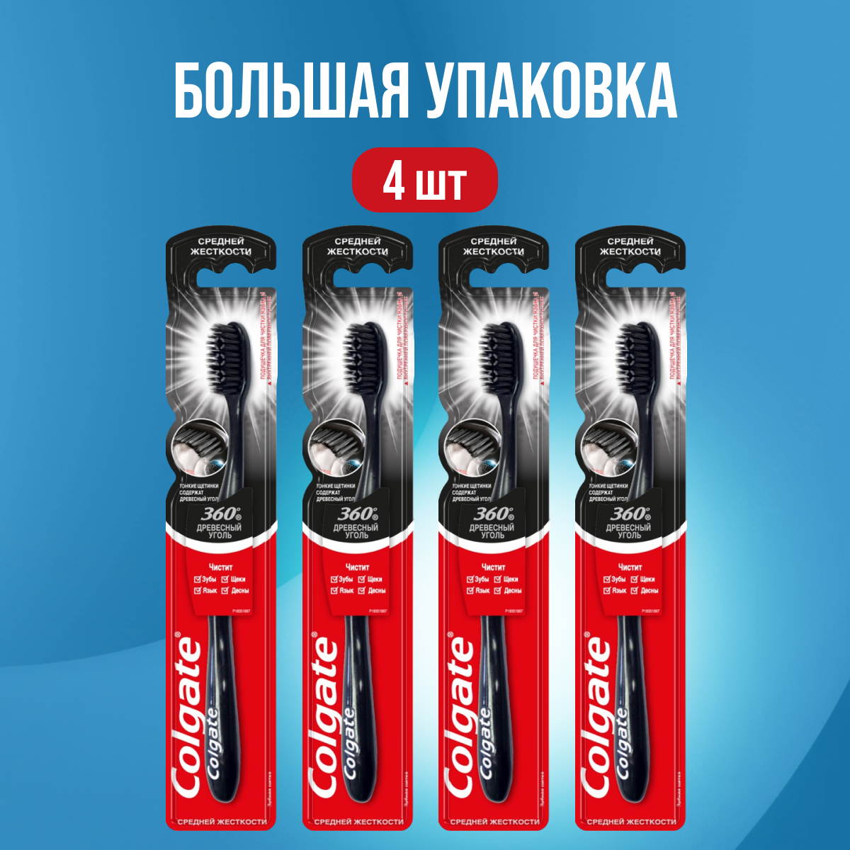 Отзывы на Зубная щетка Colgate средней жесткости 360 Древесный уголь 4 шт
