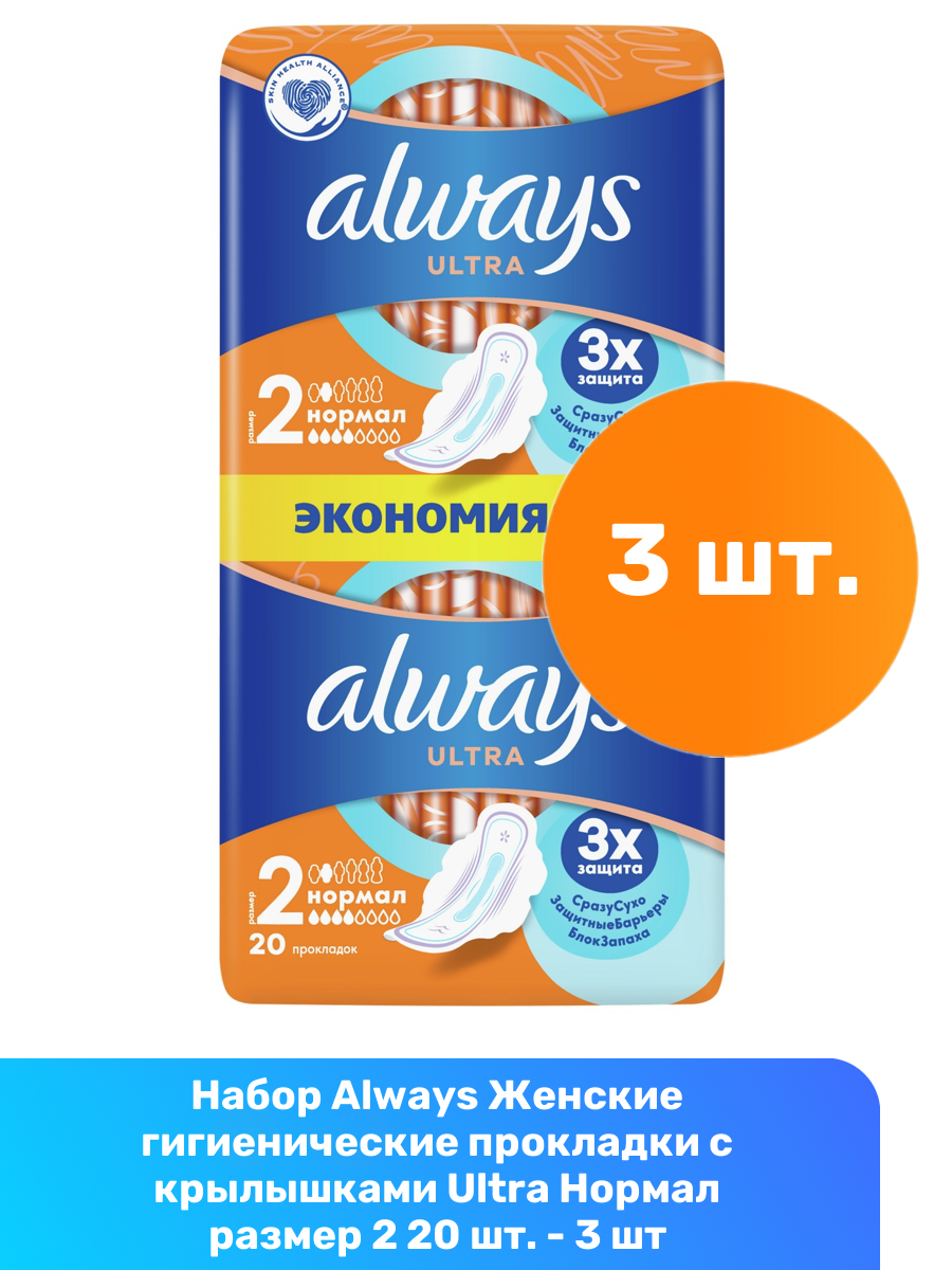 Always Женские гигиенические прокладки с крылышками Ultra Нормал размер 2 20 шт. - 3 шт информация:
