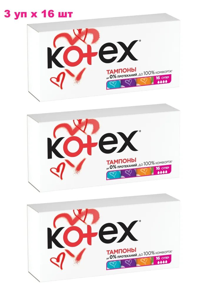 10 цен на Тампоны Kotex Super / Котекс Супер, 3 x 16 шт (48 штук)