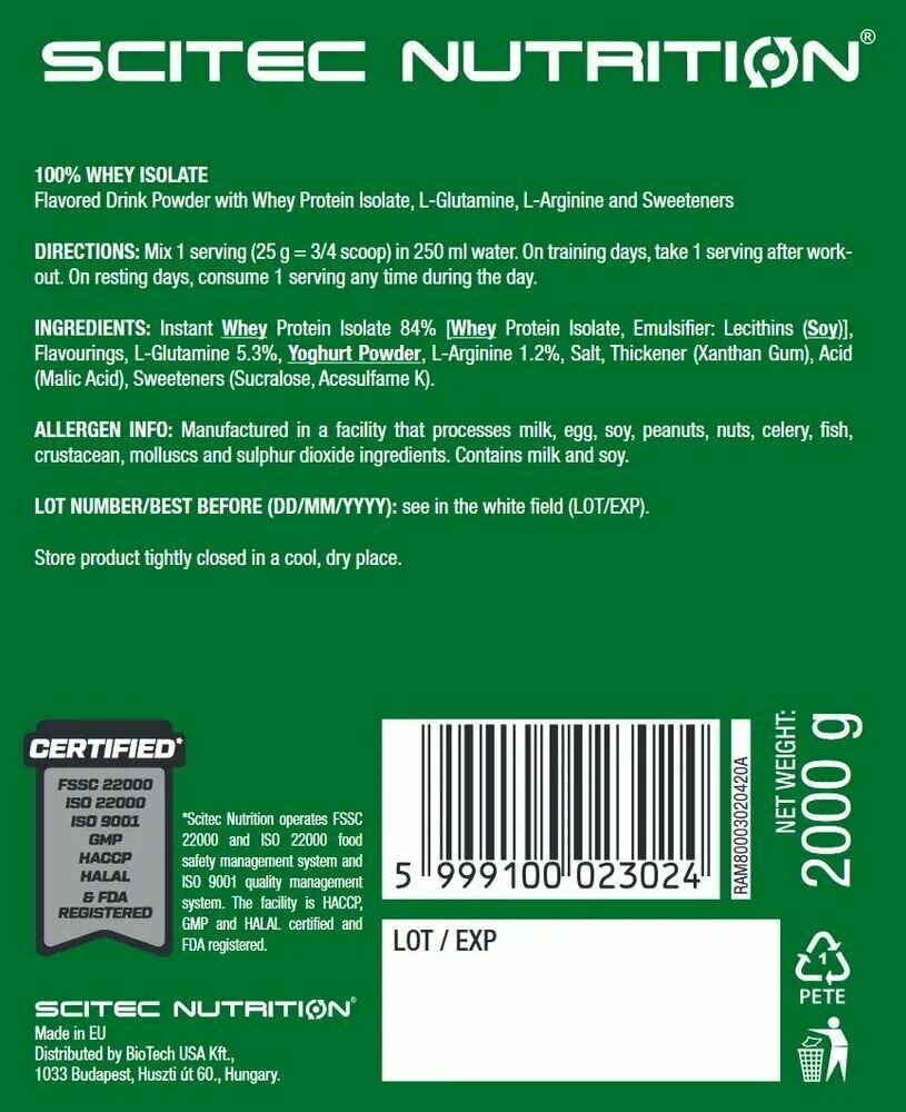 Scitec Nutrition 100% Whey Isolate 2000 гр (Scitec Nutrition) Банан