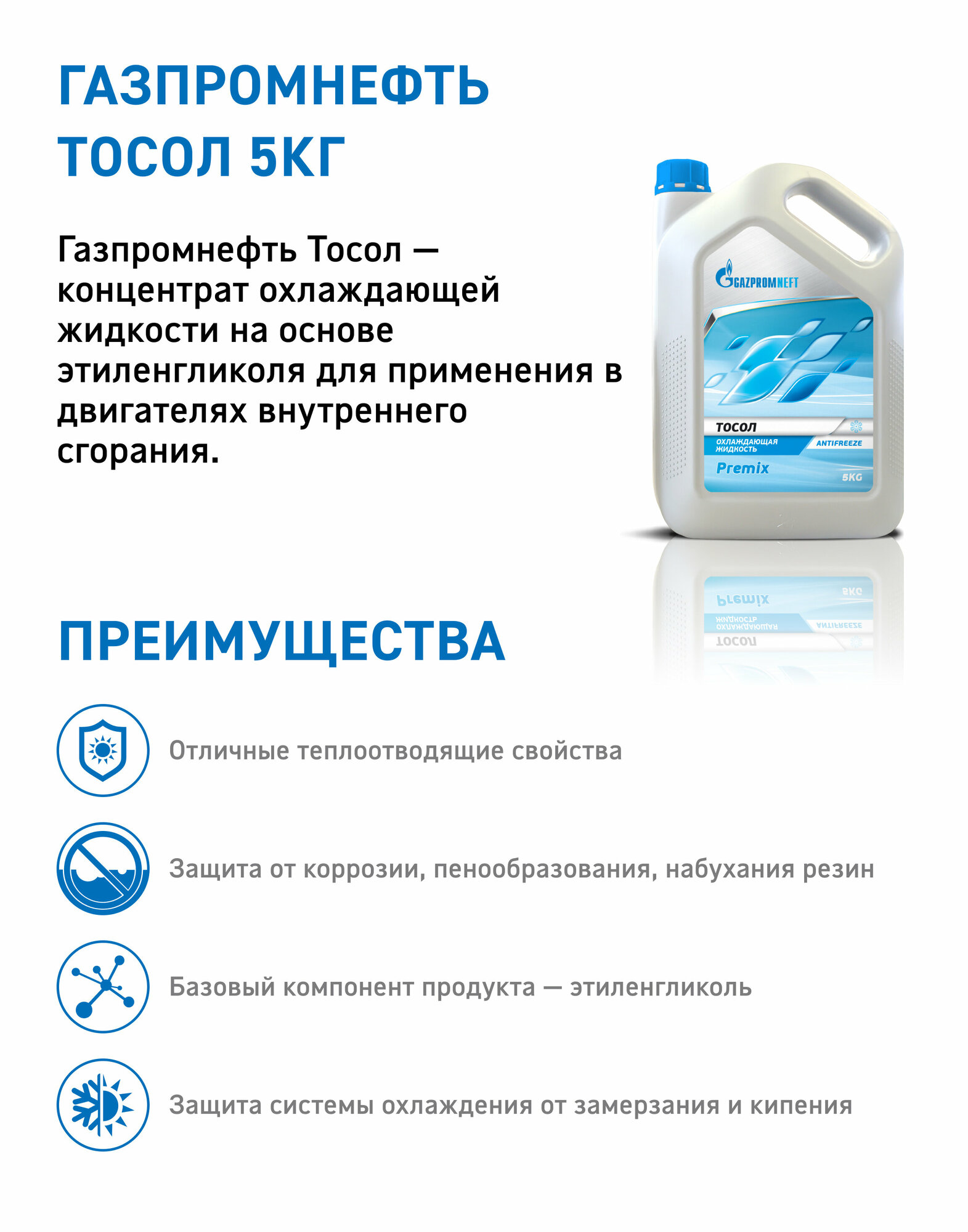 Тосол Gazpromneft 40 готовый -40C синий 5 кг 2422220110