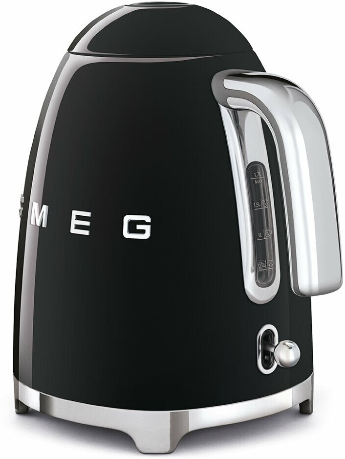 Электрический чайник Smeg Стиль 50-х г., чайник электрический, 1.7 л, 2400 Вт, корпус из нержавеющей стали, черный KLF04BLEU