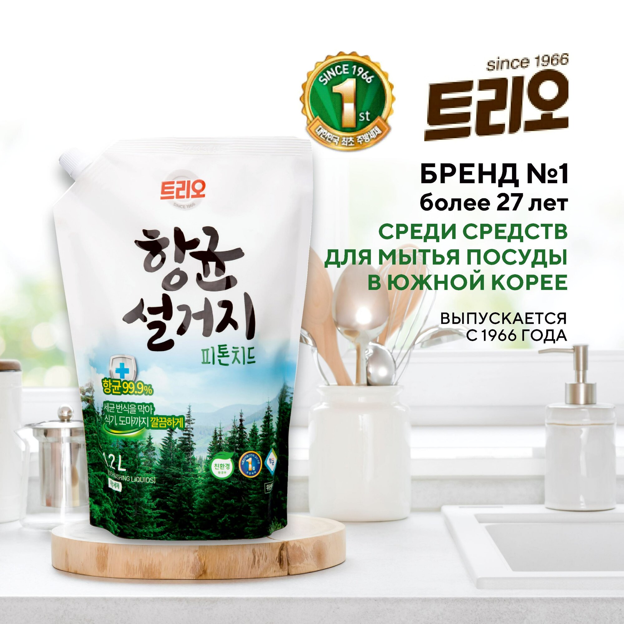 Отзывы на Средство для мытья посуды Трио "Фитонциды", антибактериальное, с ароматом таежной хвои, 1,2 л