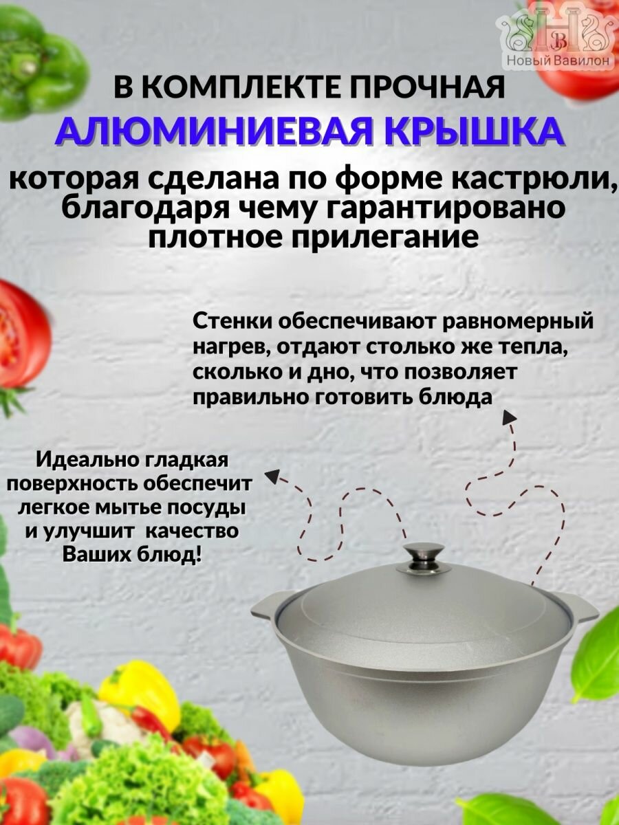 Белая калитва Кастрюля, 6 л, полусферическая, металлическая крышка, цвет хромированный