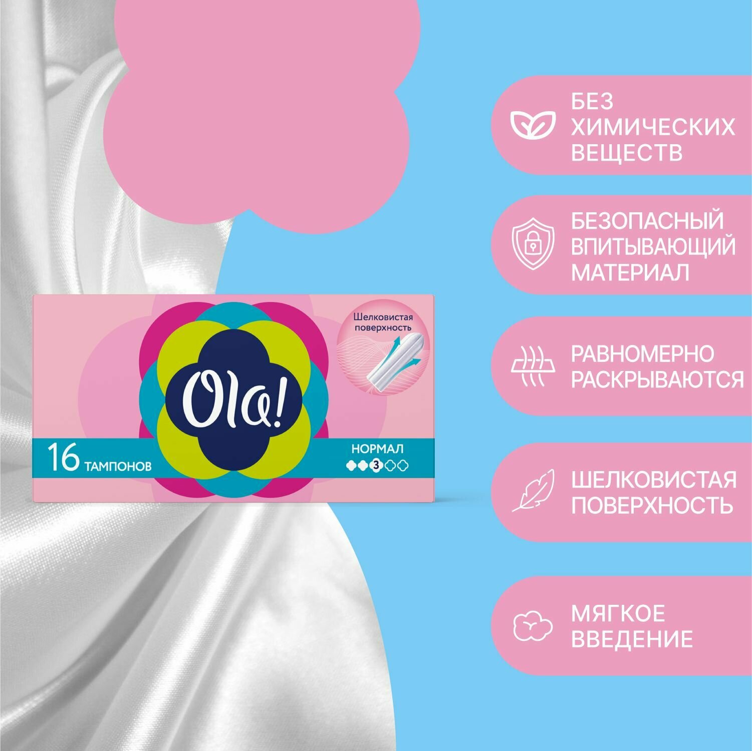 Тампоны гигиенические без аппликатора Ola! Нормал, шелковистая поверхность, 16 шт. информация: