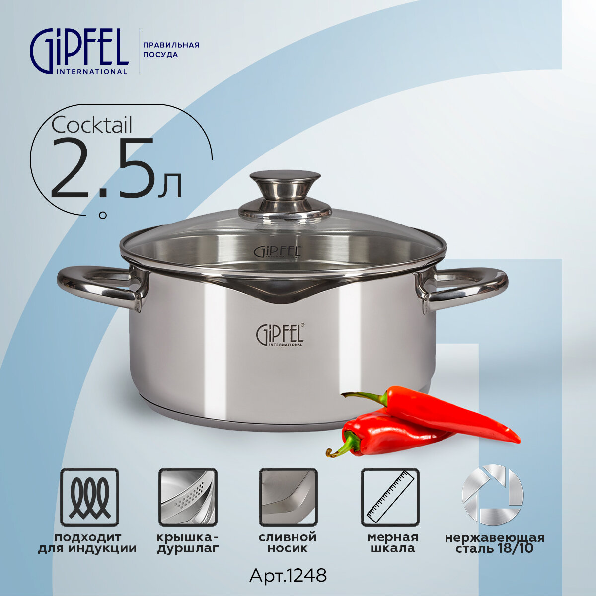 Кастрюля из нержавеющей стали Gipfel Cocktail 1248 20 см/2,5 л информация: