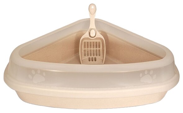 10 цен на Туалет P666 для кошек угловой с бортом (совок в комплекте), 540*400*150мм
