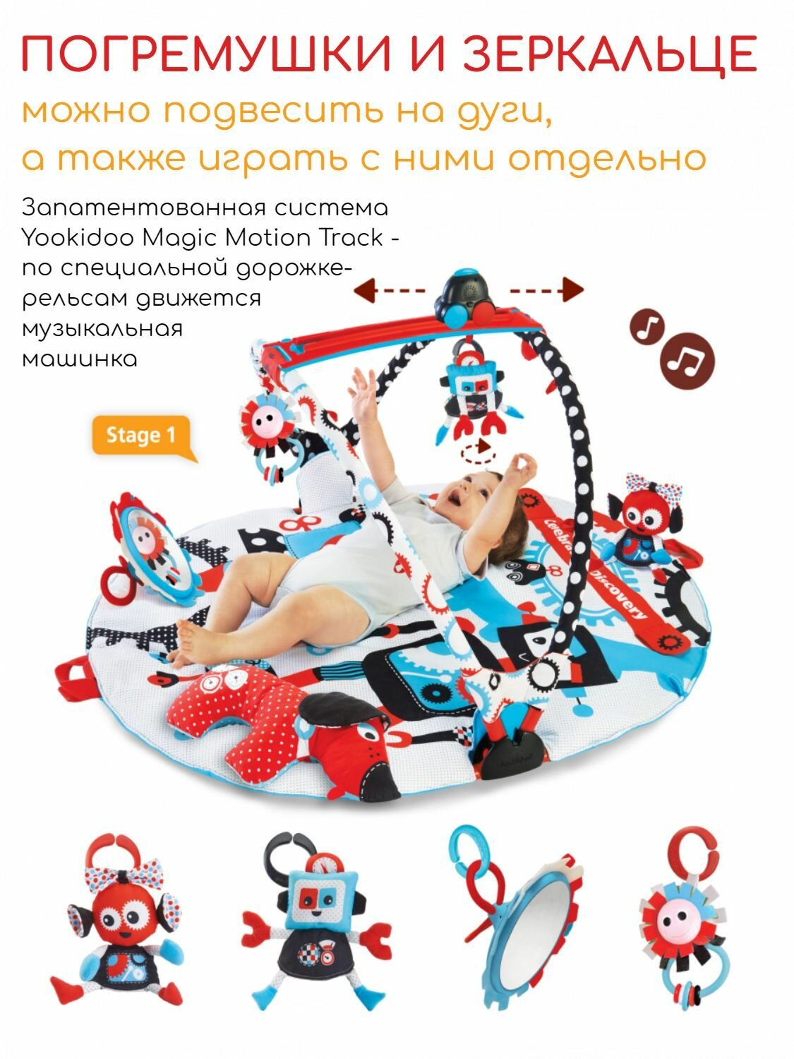 Развивающий коврик Yookidoo Страна роботов, с дугами / Интерактивный развивающий коврик для малышей информация: