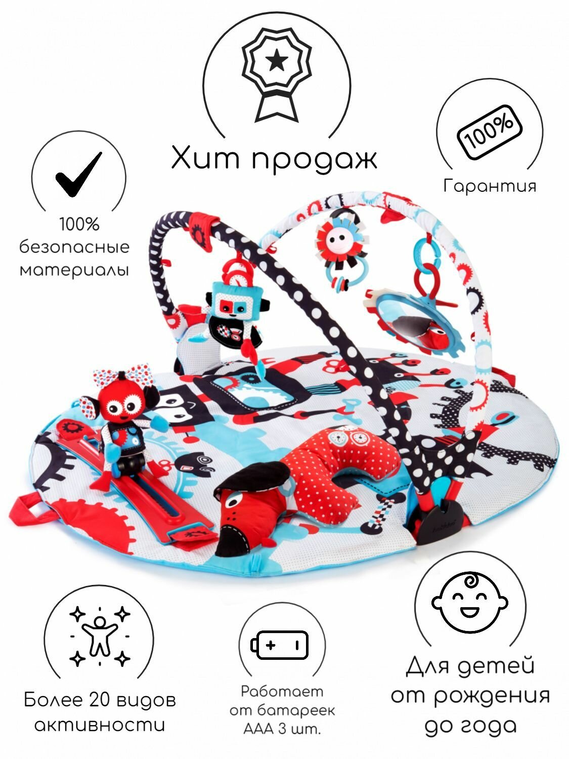 Коврик развивающий "Страна роботов" интерактивный; круглый с дугами