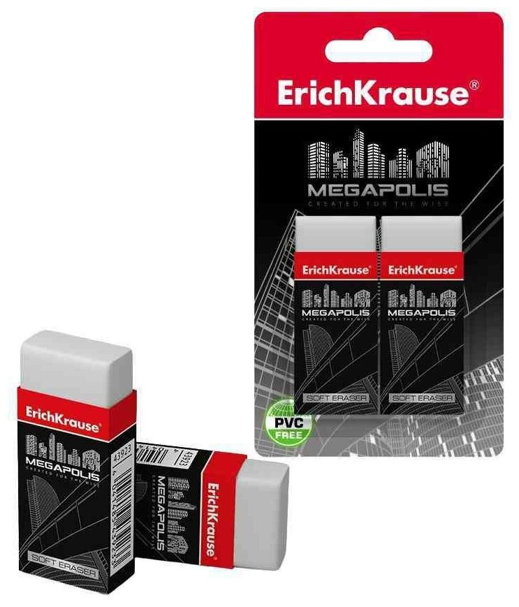 Ластик ErichKrause MEGAPOLIS (в блистере по 2 шт.) информация: